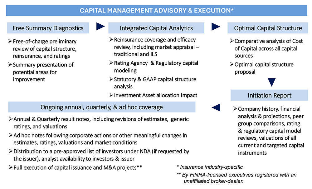 -For the insurance industry clients, our core advantage resides in an uncompromisingly independent, holistic capital management advisory combining reinsurance and capital markets solutions, without any conflicts of interest embedded in the traditional intermediary models